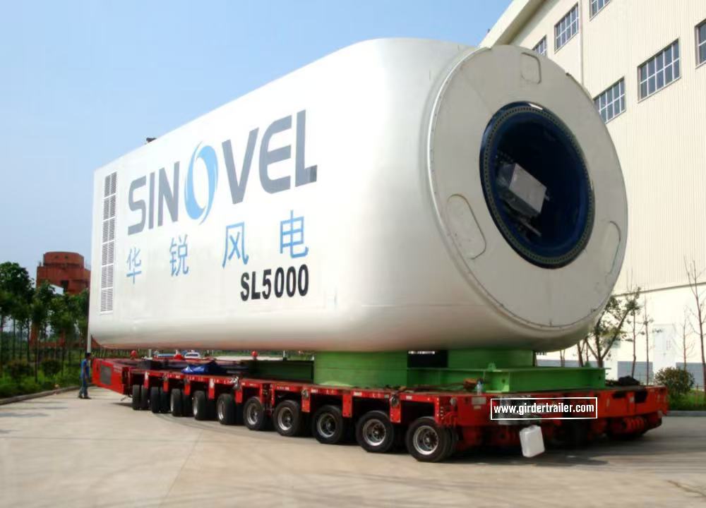 Wind power,as an ECO and renewable energy, will be more and more popular in the world.Wind power generation construction field is also prosperous in proportion . In the wind power industry, we mainly have wind power nacelle, wind turbine blades, wind tower section, etc. to complete industrial chain. GIRDER TRAILER provide all types transportation solutions for the wide power industry use: